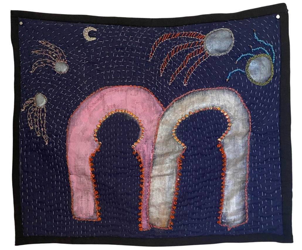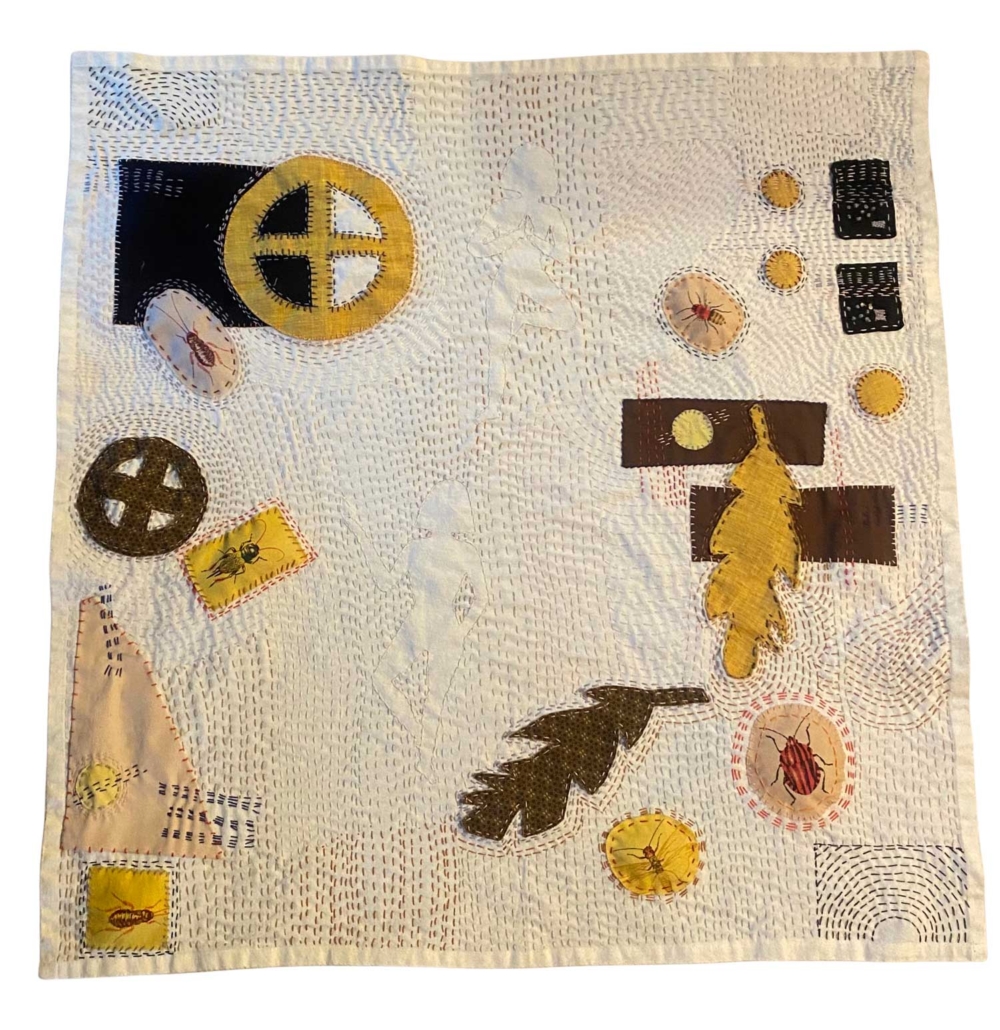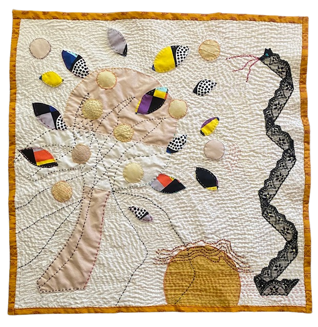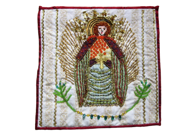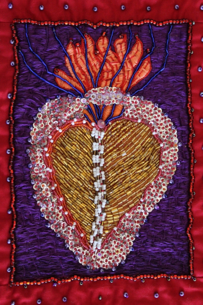 In subsequent years I shifted to wall hangings, satisfying, but much less labor intensive. Most recently I’ve made improvisational pieces, using appliqué, beading, embroidery, and big stitch quilting.
