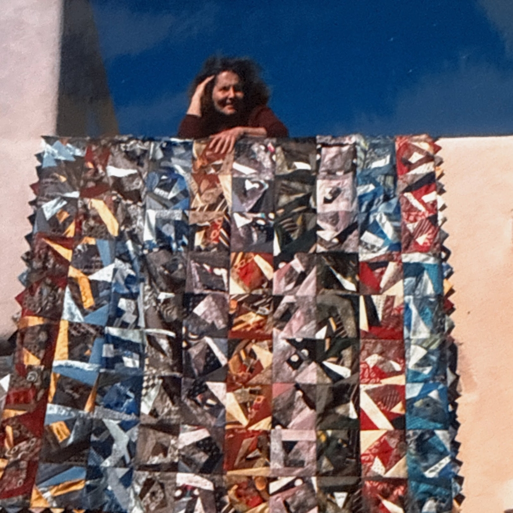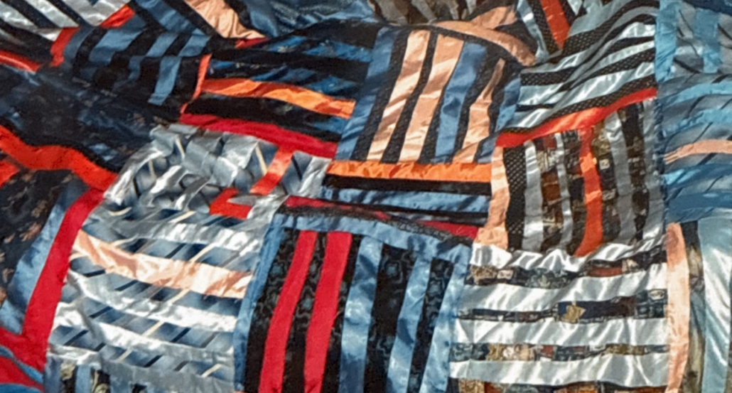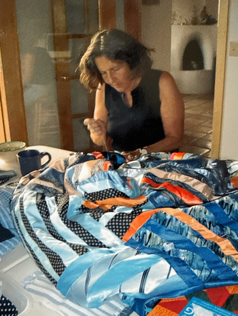 In 2003 on Memorial Day weekend, my dearest friend and crafting bestie, Barbara Perry and I decided to try our hands at quilting. We both had substantial collections of silk ties that we had found in thrift stores. We opted for modified crazy quilts—and we were off! We spent many weekends at Barbara and Fred’s home in Monticello, NM, about an hour north of Las Cruces, and between us I bet we made about fifty quilts of various sizes, in different patterns. We scouted out the best deals on fabric, especially at stores that were going out of business. And we tried out every quilting gizmo known to womankind.