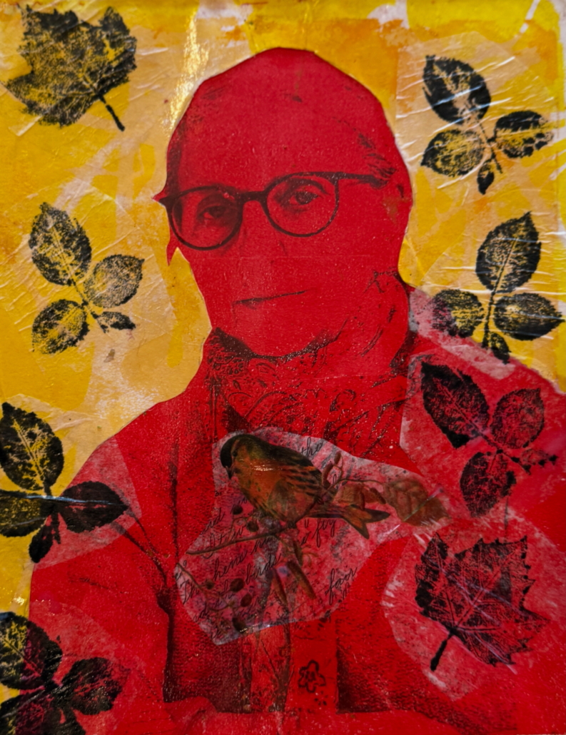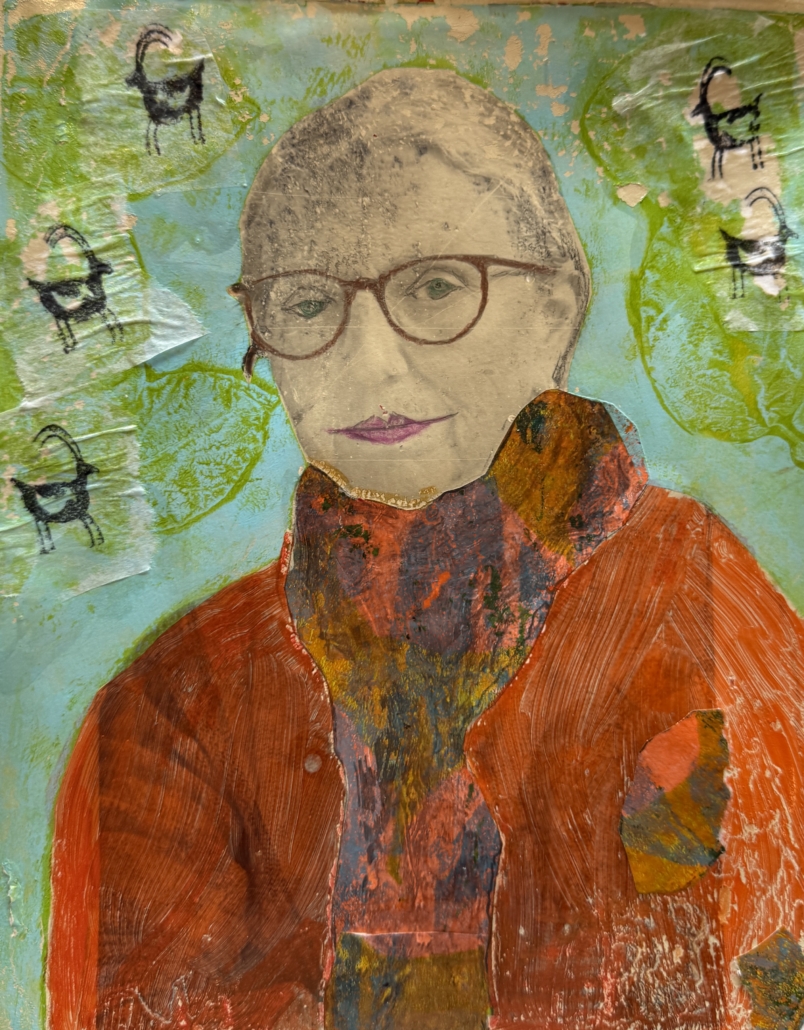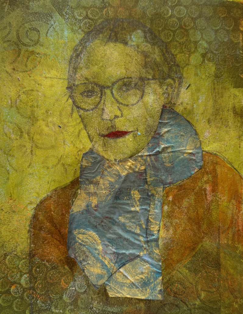 For most of these paintings, I transferred their photos onto gel plate and then incorporated various techniques and media, such as gel prints, stamping, and painting directly onto the plate. These pieces pieces demonstrate the versatility of gel-plate printing.