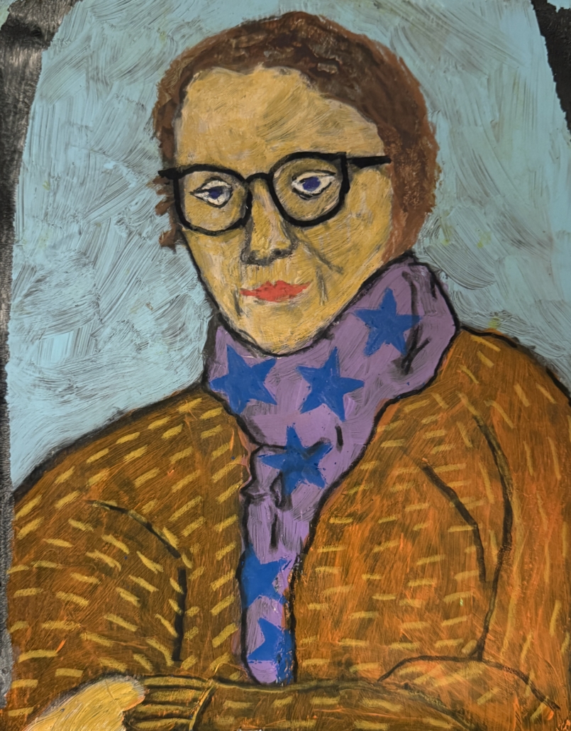 I painted the image of Ron with a blue background in acrylic. I love arting with him when I am on the Cape.